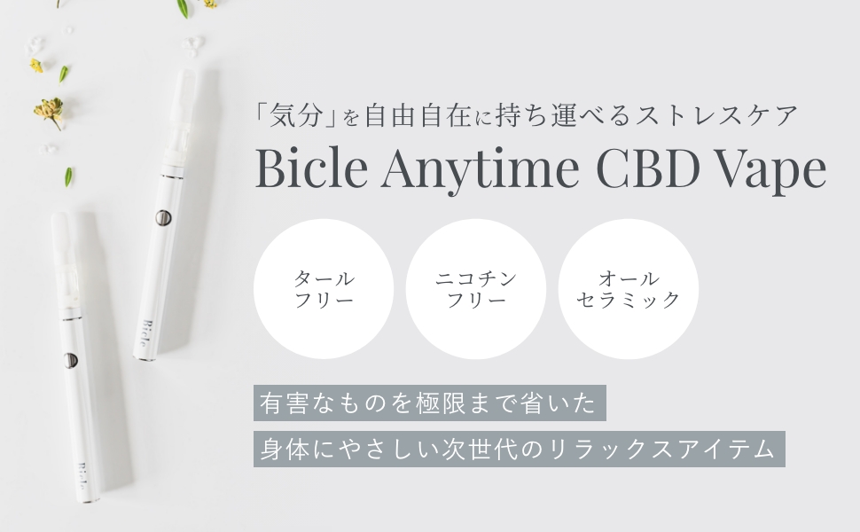 - 休日の山歩きで、スギの木の真下で花粉を吸い込み、症状が一気に出たので、持ち歩いていた御社のベイプを急いで吸いました。20分ほどして症状が緩和され、まるで何もなかったかの様な状態に戻った為、CBDは抗アレルギーに大変効くのでは?と思ったのがはじめでした。実際モニター期間の朝晩と、適宜1日複数回の吸引で花粉の症状は著しく緩和されました。質の高いCBDをこれからも使用し、周りにも薦めていきたいと思っております。(30代女性)