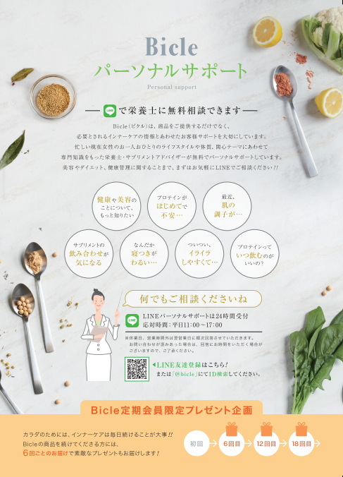 Bicleでは栄養士によるLINE無料相談も受け付けているので、CBDのことで悩んだ場合はお気軽に相談してみてくださいね。