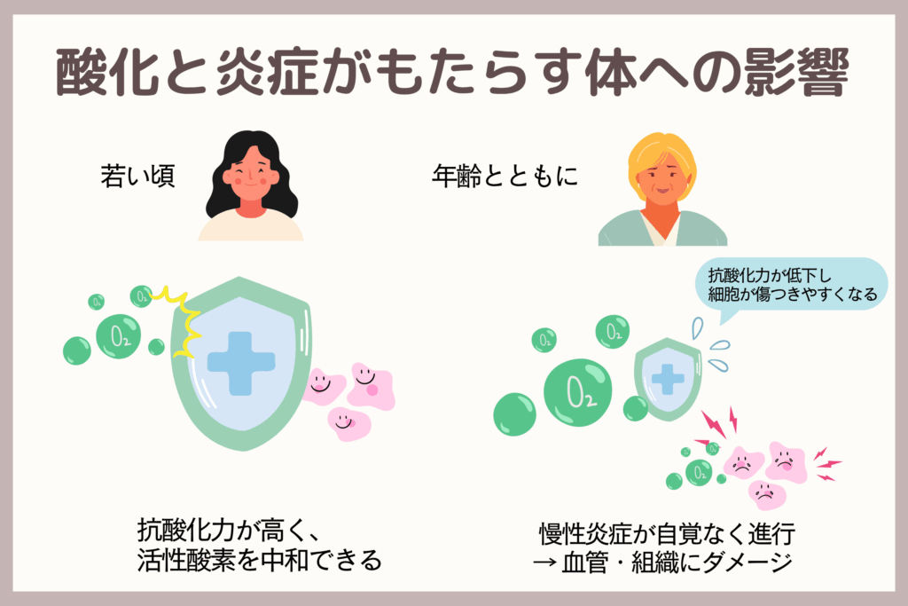 さらに見逃せないのが、体の“内側からの老化”ともいえる「酸化」と「炎症」の問題です。