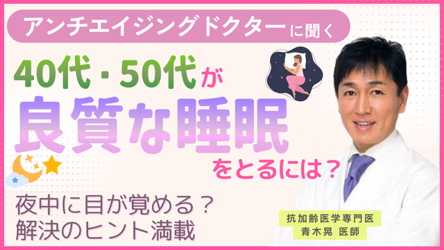 「50代に入ってからアンチエイジングに関係する良質な睡眠が取りにくくなりました。 何か対策できることはありますか?」という質問に対し、睡眠の質を向上させるためにできることについてご紹介しています。