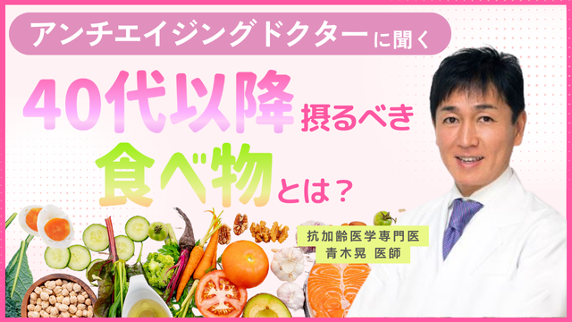 「アンチエイジングのために、40代以降に積極的に摂るべき食べ物とは?」という質問に対し、日々の食生活で意識したいポイントをご紹介しています。