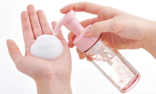 2~3プッシュ泡を手の平にとり、包み込むようにやさしく洗います。