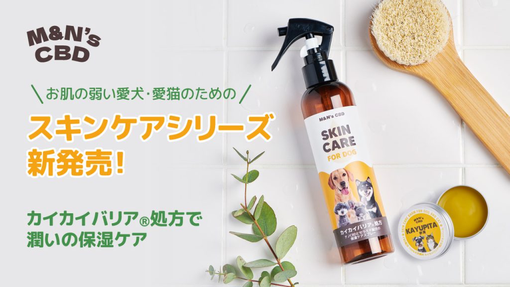 CBDを配合したペットのためのスキンケア製品を2種同時リリース!肌トラブル時や、特に乾燥する場所にスポット利用できる「M&N’s CBDカユピタ軟膏」は本日4月8日より発売!デイリーケアとして、肌を保湿し、健やかな肌を育む「M&N’s CBDカイカイバリア®スプレー」は5月5日予約販売開始を予定しています!